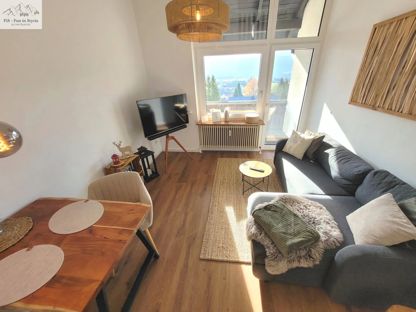 Der helle, zentral gelegene Wohnbereich besticht durch eine komfortable Sofaecke, Sessel, Esstisch und einen Fernseher (35-44 Zoll, Kabelanschluss, internationale Kanäle, digitaler Empfang). Die Ausstattung mit WLAN sowie digitalem TV sorgt für zeitgemäße Unterhaltung und bietet ergänzenden Komfort. Sichtschutz an allen Fenstern sowie ein Ganzkörperspiegel im Schlafzimmer erhöhen den Wohnkomfort. Im Essbereich finden Sie ausreichend Platz für angenehme Mahlzeiten in geselliger Runde.