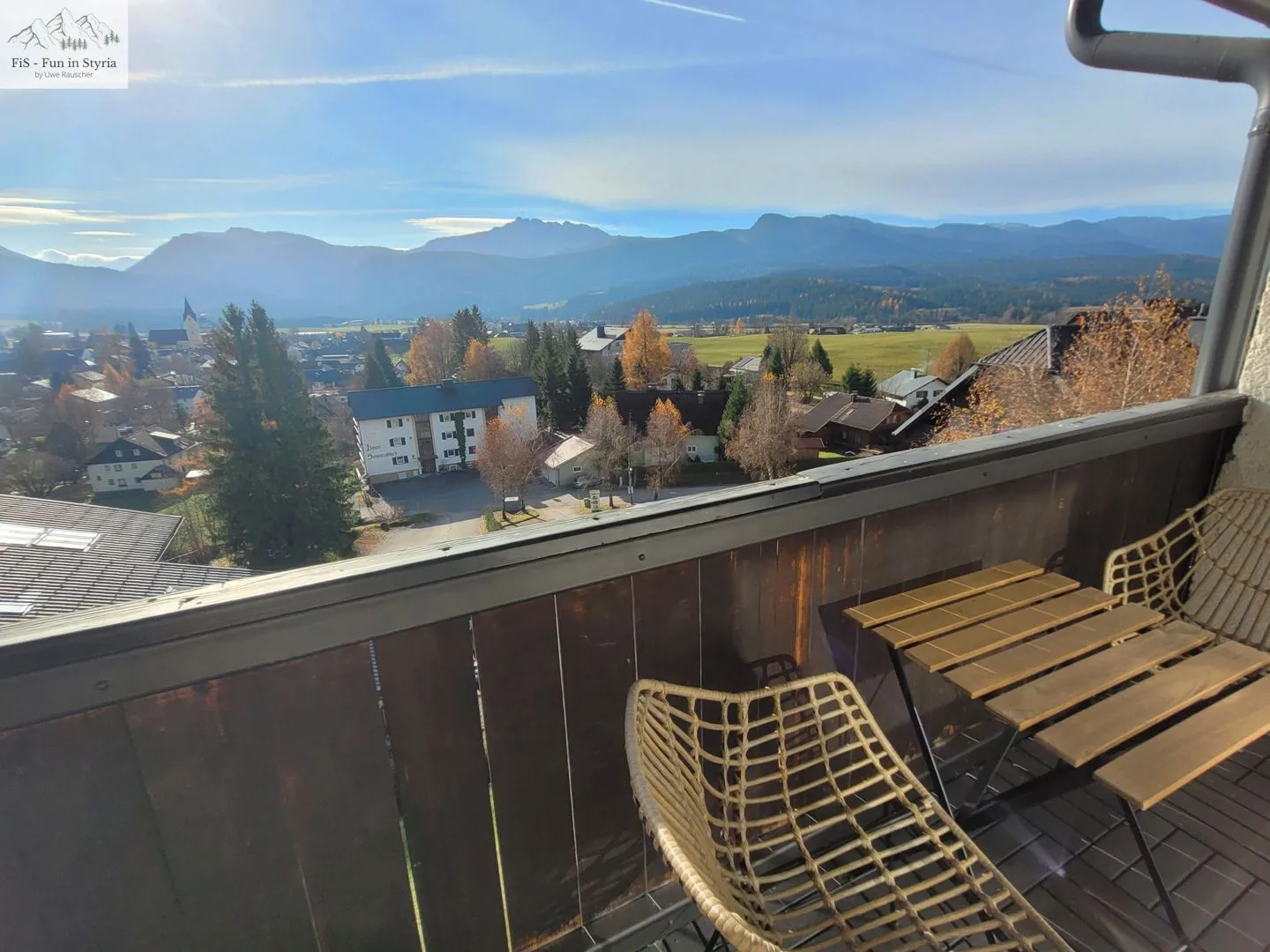 Zu den besonderen Vorzügen der Unterkunft zählt der überdachte Balkon, der mit Gartenmöbeln, Markise und einem außergewöhnlich schönen Blick auf das Umland zum Verweilen im Freien einlädt. Genießen Sie den Panoramablick auf Berge und Täler zu jeder Tageszeit, unabhängig vom Wetter.