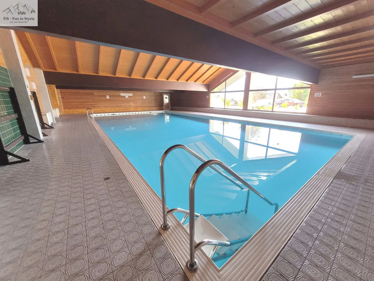 A special highlight is the covered private balcony with garden furniture and a parasol. From here, you can enjoy a unique panoramic view of the Alps and the picturesque valley. The apartment's own heated indoor pool (approx. 50 m²) promises swimming fun and relaxation year-round. In the entrance area there is also a spacious ski and bicycle storage room.