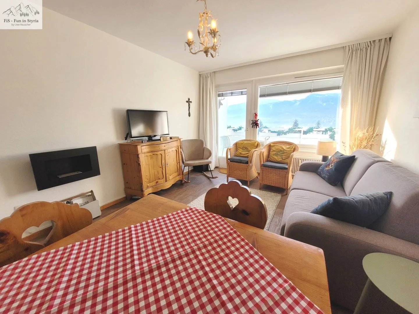 The apartment Ouwens by FiS - Fun in Styria welcomes you to the idyllic village of Bad Mitterndorf, nestled in the Styrian Alps at an altitude of approximately 800 meters. The location combines the tranquility of village life with convenient access to numerous leisure activities and tourist attractions. The apartment is situated on the second floor of a seven-story building with an elevator, ensuring easy access. Last renovated in 2022, the spacious 50 m² apartment comfortably accommodates up to four people, making it particularly suitable for families, couples, and small groups.
